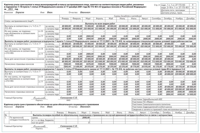 Поэтому теперь в карточке вместо одной страницы три (три раздела). Первую страницу надо заполнять по всем работникам. Вторую — только по тем, кто занят на вредных или опасных работах. А третью — по сотрудникам, получающим пособия за счет средств соцстраха.