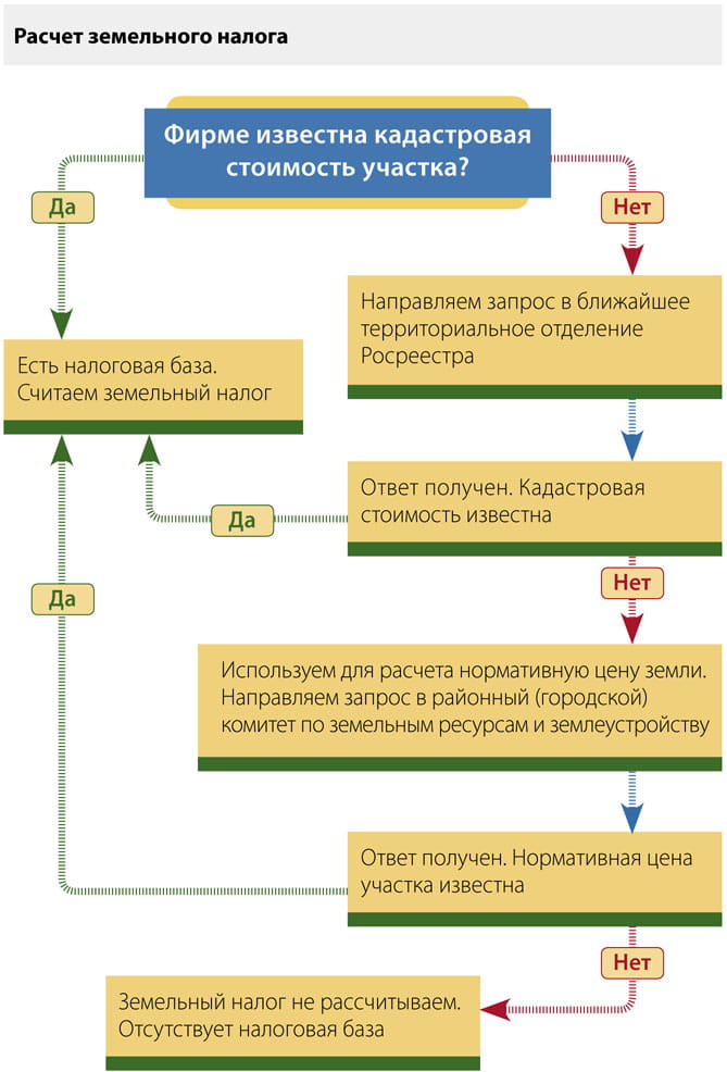 Если же в отношении земельного участка не определена ни кадастровая стоимость, ни нормативная цена, то по такому объекту отсутствует налоговая база для исчисления земельного налога и рассчитывать его не нужно14. Вместе с тем компании стоит позаботиться о доказательствах того факта, что кадастровая стоимость и нормативная цена для земельного участка не установлены. Необходимо иметь соответствующие документы от уполномоченных органов, в которые фирма направляла запросы для получения информации об этих показателях.
