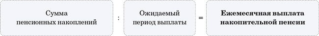 Расчет накопительной пенсии значительно проще по сравнению со страховой (формулу см. ниже).
