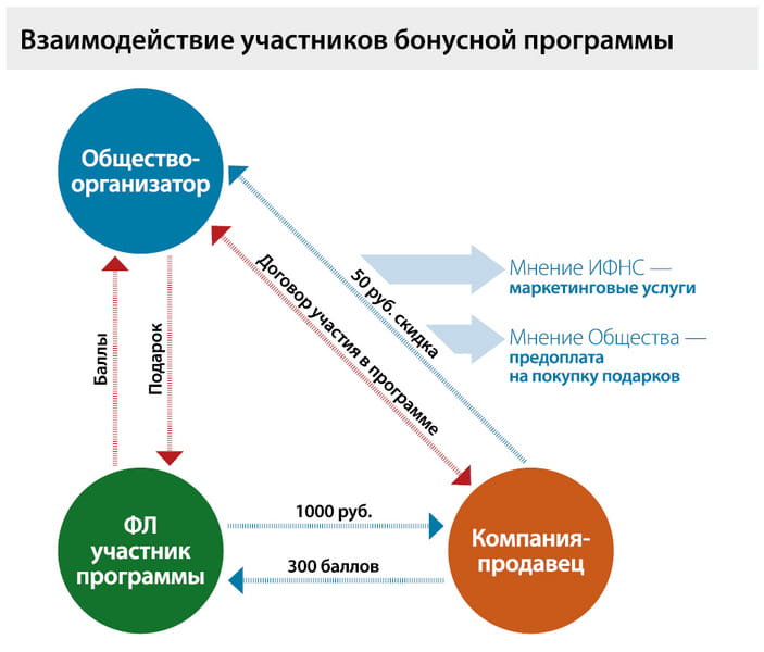 Общество полагало, что это не что иное, как предварительная оплата, произведенная в пользу участников за поощрительные товары. А поскольку по нормам Налогового Кодекса (подп. 1 п. 1 ст. 251 НК РФ) предоплата не учитывается в составе доходов в момент ее получения, то Общество отражало ее в составе доходов в момент реализации поощрительных товаров или в момент списания баллов, то есть примерно через три года после их фактической уплаты.