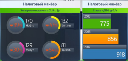 «Большой налоговый маневр» — это постепенное уменьшение экспортной пошлины на сырую нефть с одновременным увеличением налога на добычу полезных ископаемых (НДПИ). Его основная цель — стимулировать НПЗ к более глубокой переработке нефти и отказу от экспорта темных нефтепродуктов. Ежегодно, начиная с 2015 года и заканчивая 2017-м, экспортная пошлина будет постепенно снижаться, а НДПИ расти.