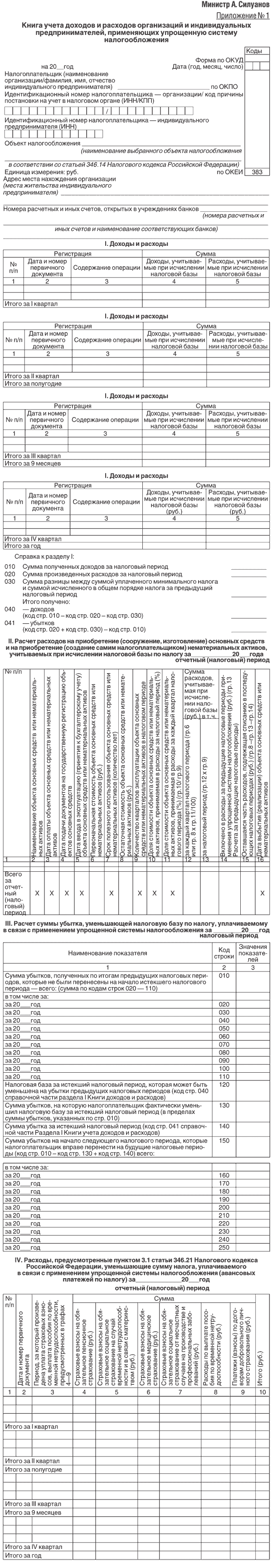 Утверждена новая форма книги учета доходов и расходов. Форма книги утверждена Приказом Министерства финансов Российской Федерации (Минфин России) от 22 октября 2012 г. N 135н «Об утверждении форм Книги учета доходов и расходов организаций и индивидуальных предпринимателей, применяющих упрощенную систему налогообложения, Книги учета доходов индивидуальных предпринимателей, применяющих патентную систему налогообложения, и Порядков их заполнения».