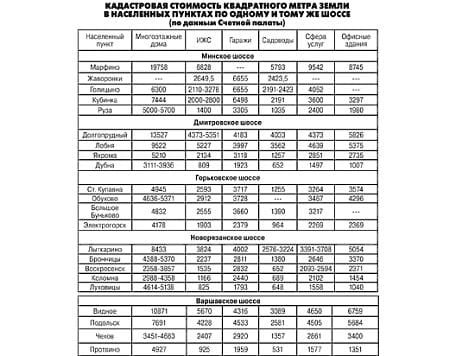 Независимые оценщики искали по компьютеру объявления о продаже земли в том или ином районе, чтоб понять, по какой цене ее там продают. Оценка проводилась в отношении земель разного назначения — не только под садоводство и дачи, но и под бизнес, гаражи, учреждения. Объявления о продаже земель сортировались по видам пользования, для каждого вида выводили среднюю цену за квадратный метр и умножали на площадь оцениваемого участка.