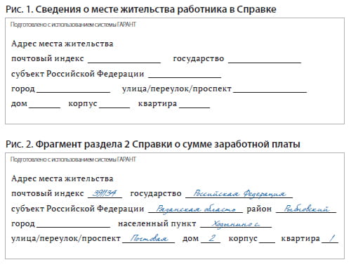 В утвержденной форме Справки сведения о месте жительства работника выглядят следующим образом (рис. 1).