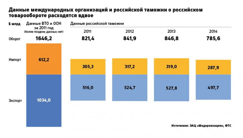 Ученые РАН обратили внимание на расхождение статистических данных Федеральной таможенной службы с данными ВТО и ООН. Например, в 2011 году по импорту оно составило 44,5% годового объема, по экспорту — 44,3% после пересчета расхождений с применением методических рекомендаций по проведению сопоставительного анализа данных о внешней торговле.