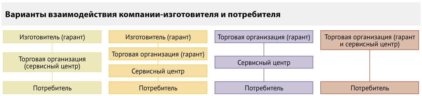 Схемы работы при осуществлении гарантийного ремонта и гарантийного обслуживания представлены на рисунке ниже.