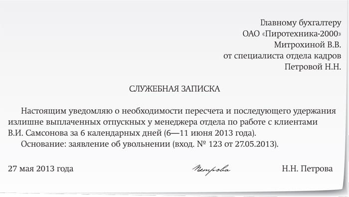 Служебная записка. Образец служебной записки приведен на образце ниже.